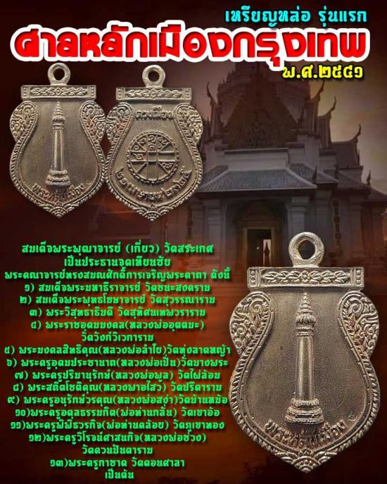 เหรียญหล่อพระหลักเมือง ดวงเมือง ศาลหลักเมืองกรุงเทพมหานคร ปี 41 เนื้อนวะโลหะพิเศษ พร้อมกล่องเดิม..เคาะเดียว |