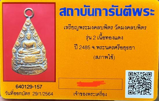 เหรียญหลวงพ่อพระมงคลบพิตร เนื้อทองแดง จ.อยุธยา เหรียญนี้เป็นรุ่น2 สร้างขึ้นเมื่อปี พ.ศ.2485 ปลุกเศกโดยพระเกจิอาจารย์ดังมากมาย ซึ่งล้วนแต่โด่งดังระดับประเทศทั้งสิ้น อาทิเช่น