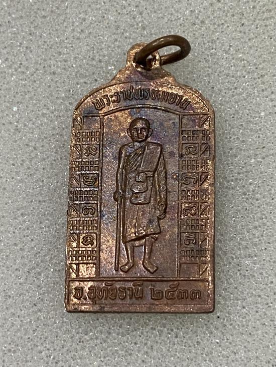 อยู่ด้านบน และด้านล่างเขียนว่า "จ.อุทัยธานี 2533" อักษรขอมด้านซ้ายเขียนคำว่า