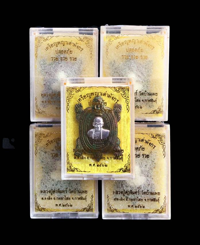 +!!เคาะเดียวllดง ตลอดสาย!!+ (รับ 5 เหรียญ) เหรียญเต่ามังกร รวย รวย รวย หลวงปู่คำจันทร์ (หลวงปู่ฟอร์จูนเนอร์) วัดบ้านเมย จ.กาฬสินธุ์ เนื้อชนวนผิวรุ้งหน้ากากเงิน ทั้ง5เหรียญ ไม่แกะซีล 4 เหรียญ ไปลุ้นเลข