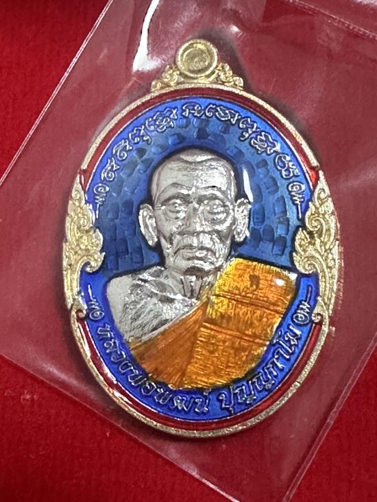 วัดใจแดงแรก เหรียญหลวงพ่อพัฒน์ วัดห้วยด้วน รุ่น รวยเพิ่มทรัพย์ เนื้อเงินลงยา หมายเลข65 สร้าง100เหรียญ (นน. 15กรัม)