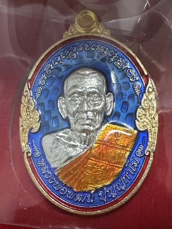วัดใจแดงแรก เหรียญหลวงพ่อพัฒน์ วัดห้วยด้วน รุ่น รวยเพิ่มทรัพย์ เนื้อเงินลงยา หมายเลข28 สร้าง100เหรียญ (นน.16กัม)