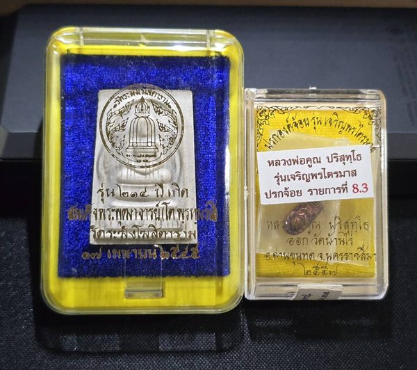 สภาพสวย . (2 องค์) . เท่าไหร่ เท่านั้น ... สมเด็จวัดระฆัง 214 ปี พิมพ์พระประธาน กล่องเดิม + ปรกจ้อย เจริญพรไตรมาส หลวงพ่อคูณ ปี 2557 กล่องเดิม |