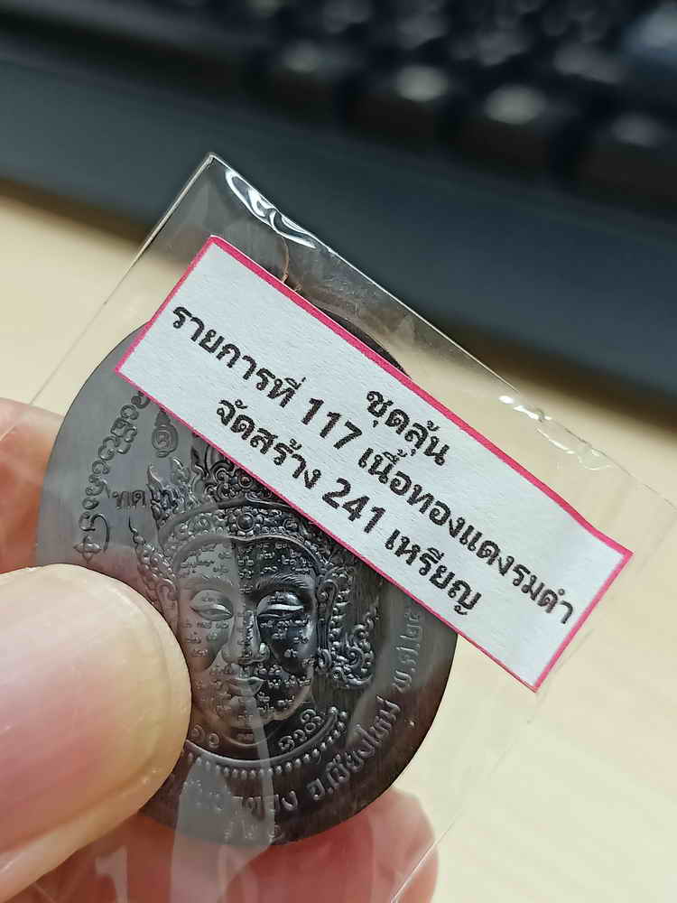 วัดใจ 100 เหรียญเจริญพร ครูบาคำฝั้น วัดกอโชค สันป่าตอง จ.เชียงใหม่ 2568 ทองแดงรมดำ หมายเลข 121 กล่องเดิม |