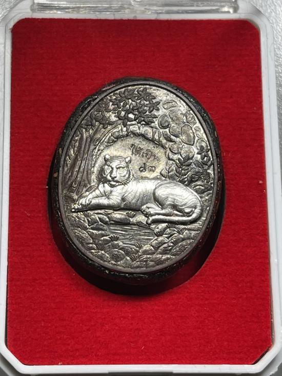 เบี้ยแก้พญาเสือนอนกิน องค์ครู รุ่นแรก พระอาจารย์ประสูติ วัดในเตา เนื้อนวะพรายเงินหน้ากากเงิน จารยันต์