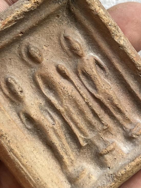 พระเนื้อดินพิมพ์พระยืน 3องค์ ไม่ทราบยุค