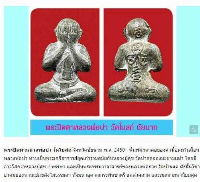 พระปิดตา หลวงพ่อปา เนื้อชินตะกั่ว วัดโบสถ์ จ.ชัยนาท |