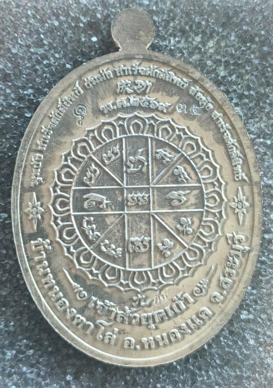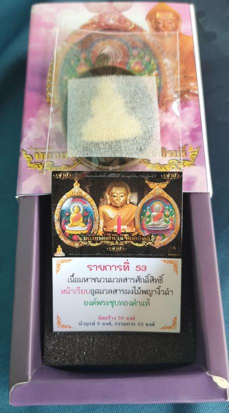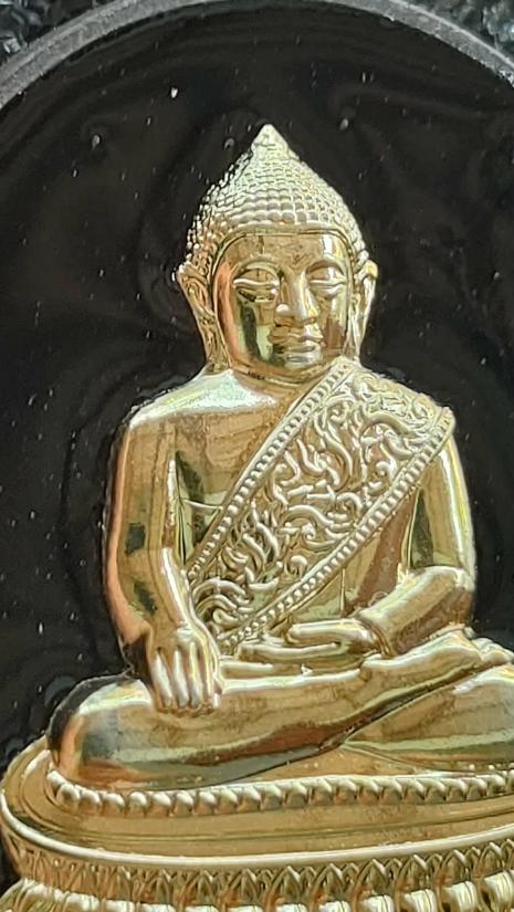 เหรียญพุทธศิลป์ หลวงพ่อสำเร็จศักดิ์สิทธิ์รุ่น"เจ้าสัวยุค๙" บ้านหนองตาโล่ สระบุรี เนื้อมหาชนวนมวลสารศักดิ์สิทธิ์ หน้าเรียบอุดมวลสารผงไม้พญางิ้วดำ องค์พระชุบทองคำแท้ เลข ๓๕ พร้อมกล่อง กันสิ่งชั่วร้าย