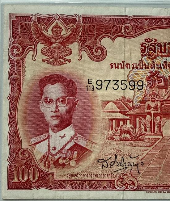 แบงค์100บาท แดงเข้ม แบบที่9 พิมพ์โทมัส 1 ใบ สภาพสวยตามรูป |