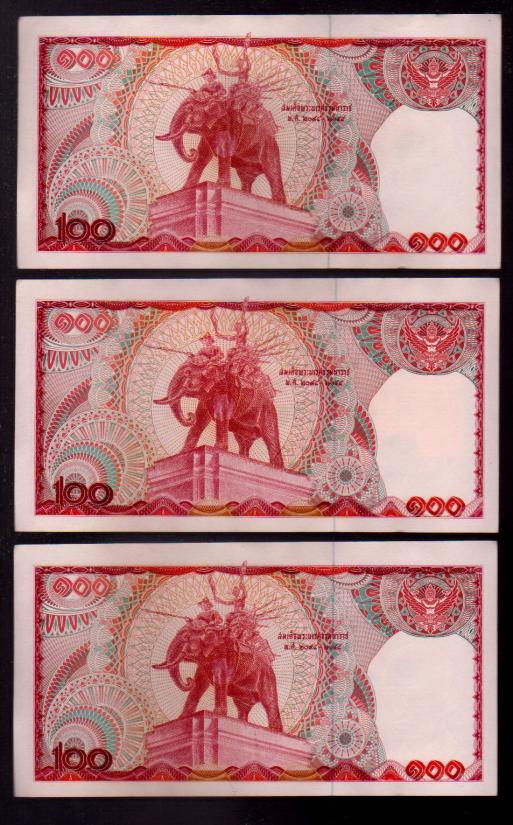 ## ธนบัตร 100 บาท ## ช้างแดง ## หกหลัก ## 9หน้า ## เรียงเลข 3 ฉบับ ## ไม่ผ่านการใช้ |