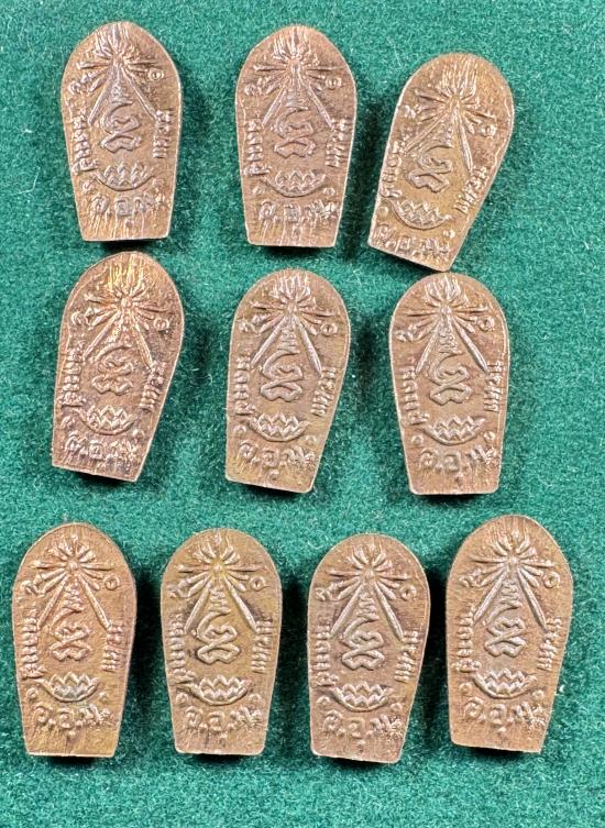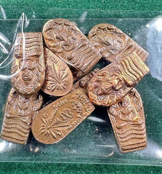 พระปรกใบมะขาม หลวงปู่แหวน ปี 2520 เนื้อทองแดง 10 องค์ สวยเดิม เคาะเดียวครับ |