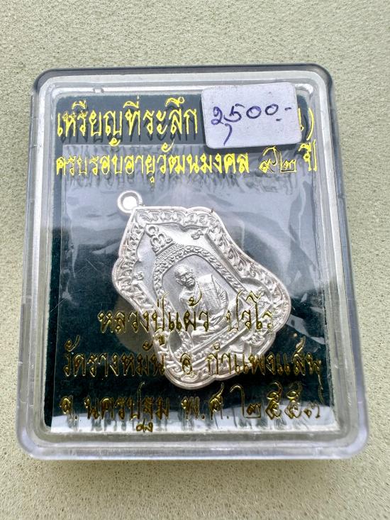 หลวงปู่แผ้ว ปวโร .. เหรียญระฆัง (แจกทาน) วัดรางหมัน ปี 2557 เนื้อเงินเลข3หลัก 865 พระสร้างน้อย 1,199 เหรียญเท่านั้น พร้อมกล่อง