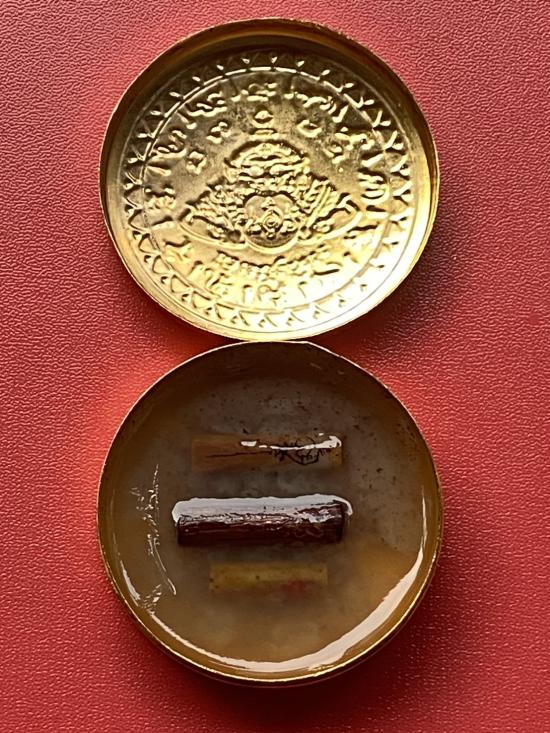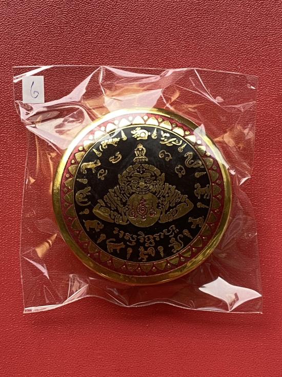 เคาะเดียวแดง สีผึ้งพระราหู รุ่น มงคลจักรวาล เนื้อ โลหะชุบทองลงยาสีดำขอบสีแดง ขนาด 5ซม |