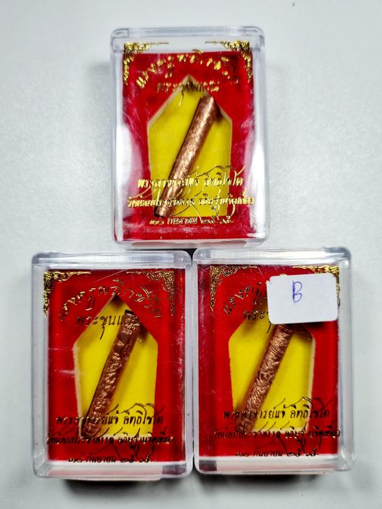 ตะกรุดหนุมาณเชิญธง แรงครูพลิกชีวิต พระอาจารย์แจ้ เนื้อทองแดงกรรมการ3ดอก พร้อมกล่อง (B) |
