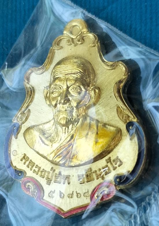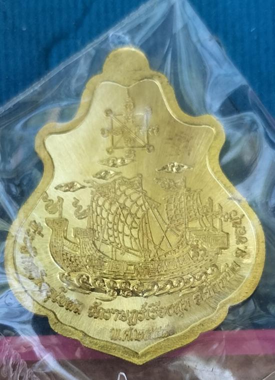 เหรียญปาดตาลสำเภาทอง เนื้อฝาบาตรลงยา เลขสวย 56768 หลวงปู่ฮกวัดราษฏร์เรืองสุข บ้านบึง ชลบุรี 2558 |