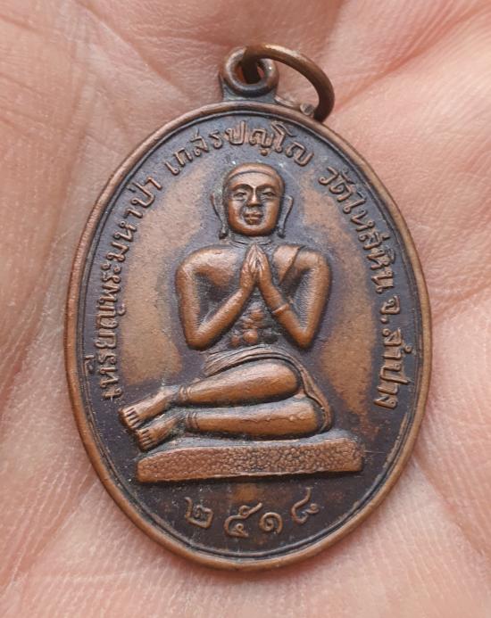 เหรียญพระมหาป่า วัดไหล่หิน หลวงพ่อเกษม เขมโก ปี 2518 เมตตาปลุกเสก (หลังตอกโค็ต) |