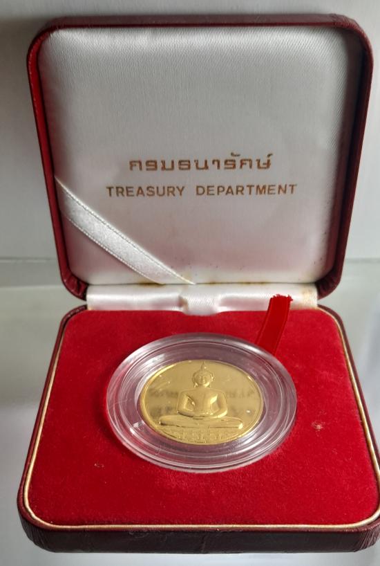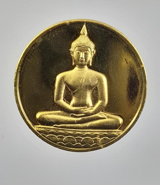 เหรียญพระพุทธสิหิงค์ เนื้อชุบทองปัดเงา สวยเดิมพร้อมกล่อง หลวงพ่อเกษม เขมโก ปลุกเสก กรมธนารักษ์สร้าง |