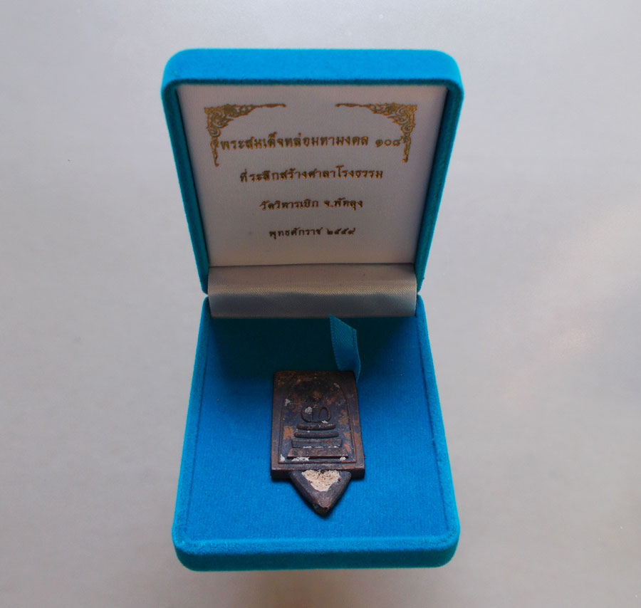 พระสมเด็จหล่อมหามงคล 108 วัดวิหารเบิก จ.พัทลุง ที่ระลึกสร้างศาลาโรงธรรม พ.ศ.2559 เนื้อโลหะผสมไม่ตัดก้านช่อ ตอก 2 โค๊ต ตอกเลข กล่องเดิม !!