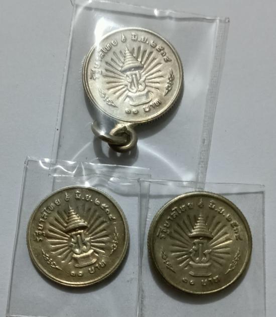 เหรียญเนื้อเงิน ร9หน้าเหรียญ10บาท ครองราชย์ครบ25ปี รวม3เหรียญ