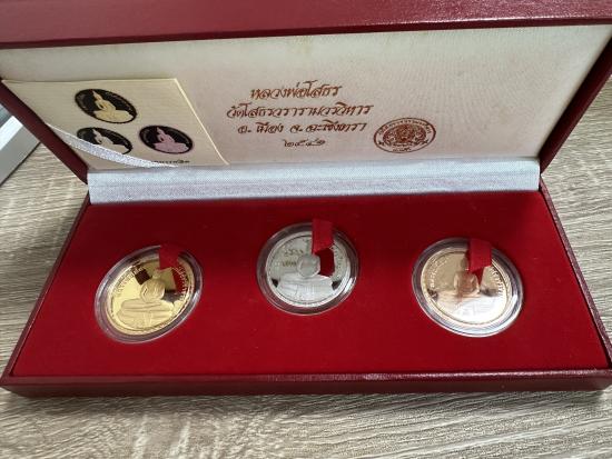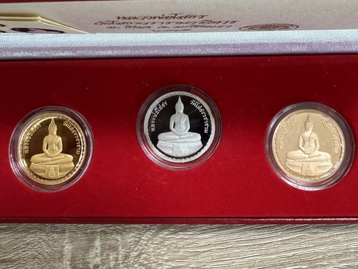 เหรียญหลวงพ่อโสธร เหรียญขัดเงา3มิติ ปี2541 ชุด3เหรียญ เนื้อเงิน ขัดเงาพ่นทราย ,ทองแดงชุบทองไมครอน ,ทองแดงขัดเงาพ่นทราย พระสวยงามมาก พร้อมกล่องหนังเดิมๆ รับประกันตามกฏ (เก็บมา28ปี)