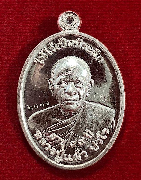 หลวงปู่แผ้ว ยันต์สวน99ปี วัดรางหมัน เนื้อเงินผิวกระจก จมูก100 เลข 2031มีกล่องเดิม คัดสวยๆ