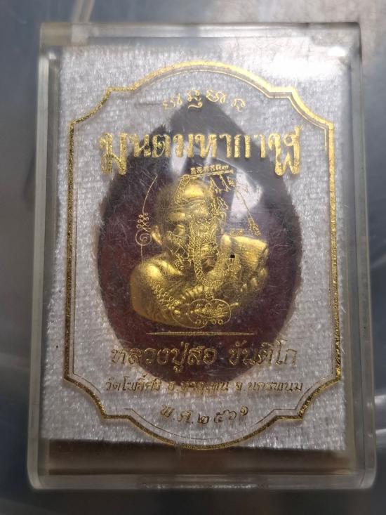 เหรียญมนต์มหากาฬ รุ่นแรก หลวงปู่สอ ขันติโก วัดโพธิ์ศรี จ.นครพนม เนื้อทองแดงรมดำลงยาแดง หน้ากากทองระฆัง หมายเลข ๑๗๓ |