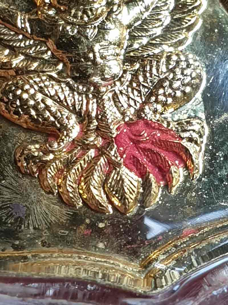 เหรียญพญาครุฑ หลวงพ่อวราห์ วัดโพธิทอง รุ่นมหาบารมี ปี 38 เนื้อกะไหล่ทอง มีเจิมแดงของหลวงพ่อ เลี่ยมกันน้ำพร้อมบูชา เคาะเดียวแดง 650 |