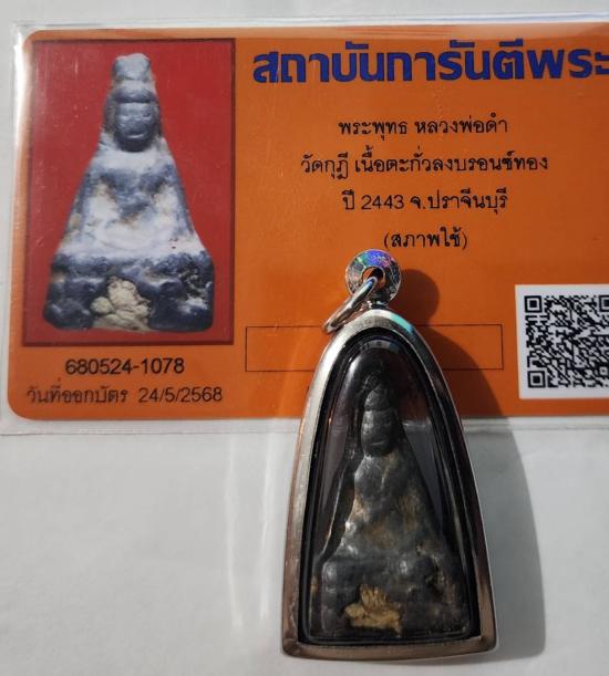พระพุทธหลวงพ่อดำ วัดกุฎี เนื้อตะกั่วลงบรอนซ์ทอง ปี 2443 จ.ปราจีนบุรี พร้อมบัตรการันตี |