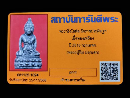 พระกริ่งโสฬส หลัง มปร. ปีพ.ศ.๒๕๑๕ เนื้อทองเหลืองรมดำ พร้อมบัตรรับรอง ครับ