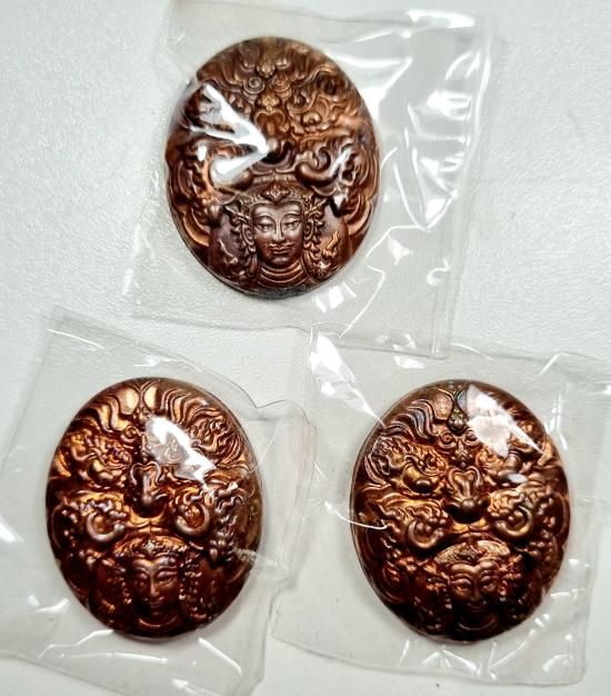 เหรียญพญาราหู พระอาจารย์ประสูติ วัดในเตา เหรียญเทพราหู เนื้อสัมฤทธิ์แดงกรรมการ ฝังเม็ดกริ่ง3องค์ |