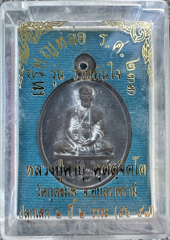 เหรียญหล่อรวยทันใจ รศ.233 หลวงปู่คำบุ เนื้อชนวนเก่า หมายเลข 689 พร้อมกล่อง