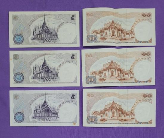 ธนบัตร 5 บาทหลังพระที่นั่ง 3 ฉบับ 10 บาท หลังวัดเบญจ 3 ฉบับ |