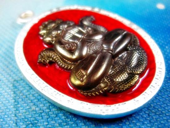 เหรียญปิดตาพังพระกาฬมหาอำนาจ หลวงปู่อิ่ม วัดทุ่งนาใหม่ จ.นครศรีธรรมราช เนื้อชุบเงินลงยาแดง + หน้ากกาก สวยๆ (---25---) |