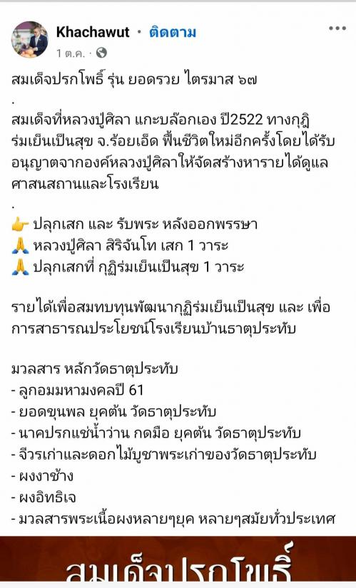 สมเด็จปรกโพธิ์ หลวงปู่มหาศิลา สิริจันโท รุ่นยอดรวยไตรมาส 67 เนื้อผงเกษร วัดธาตุประทับ วัดใจเคาะเดียวแดงครับ |