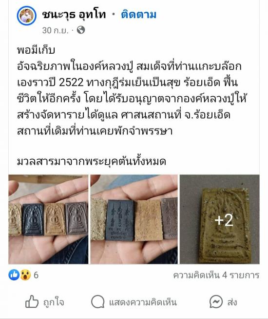 อัจฉริยภาพในองค์หลวงปู่ สมเด็จที่ท่านเเกะบล๊อกเองราวปี 2522 ทางกุฎีร่มเย็นเป็นสุข ร้อยเอ็ด ฟื้นชีวิตให้อีกครั้ง โดยได้รับอนุญาตจากองค์หลวงปู่ให้สร้างจัดหารายได้ดูแล ศาสนสถานที่ จ.ร้อยเอ็ด สถานที่เดิมที่ท่านเคยพักจำพรรษา