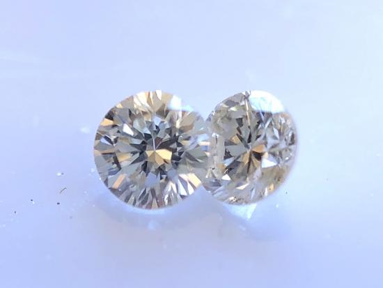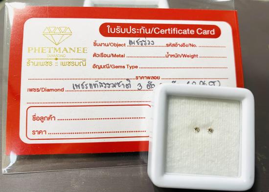 เพชรแท้ธรรมชาติ เหลี่ยมเบลเยี่ยมคัต แกะจากตัวเรือนสินหลุดจำนำ จำนวน 2 เม็ด น้ำหนักรวม 0.06 กะรัต น้ำประมาณ 92-93 VS2-VVS2 |