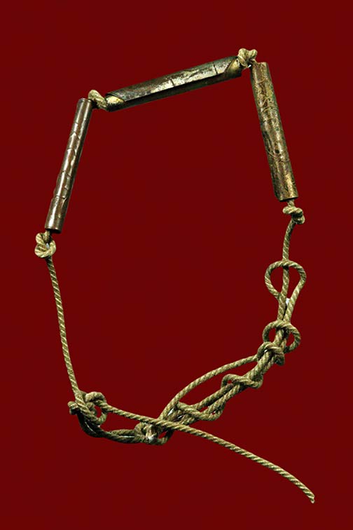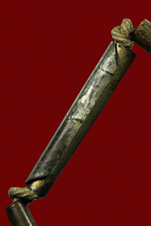 ตะกรุดสาริกา 3 ดอก เนื้อเงิน ฝาบาตร ทองแดง ขนาด 1.2 นิ้ว เชือกเก่า