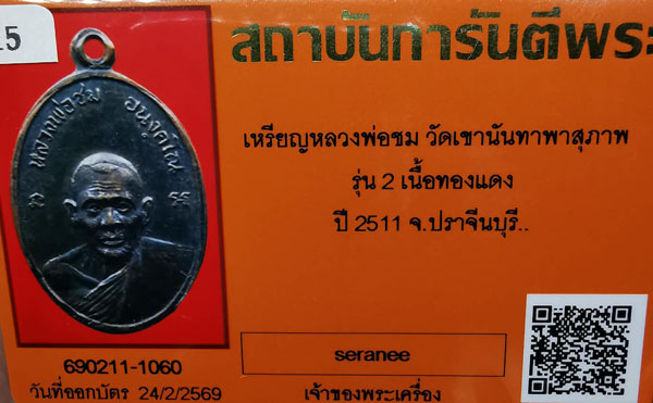 เหรียญหลวงพ่อชม วัดเขานันทาพาสุภาพ รุ่น2 เนื้อทองแดง ปี2511 จ.ปราจีนบุรี + บัตรG-pra สภาพเดิมค่ะ สภาพตามรูปทุกประการค่ะ