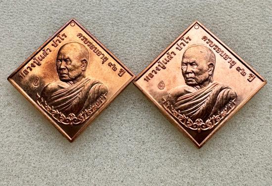 เหรียญข้าวหลามตัดหลวงปู่แผ้ว วัดรางหมัน ปี 57 ครบรอบอายุ 92 ปี เนื้อทองแดงผิวไฟ สภาพสวยตอกโค๊ตชัดเจน มี 2 เหรียญ |