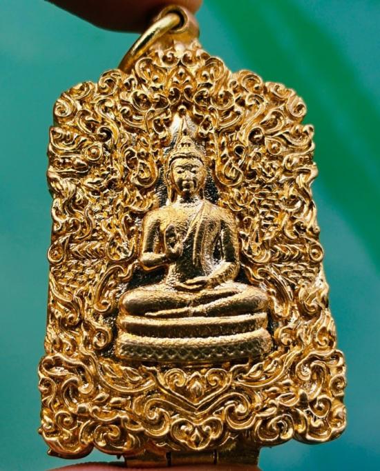 ตลับพระ สมเด็จเนื้อทองเหลืองแท้ หลังปิดลายพระพุทธรูป นูนต่ำ งานดิบ ไม่ชุบ |