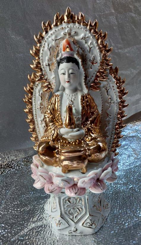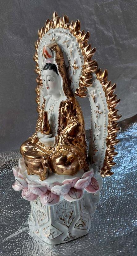***วัดใจ***เจ้าแม่กวนอิมแผ่รัศมี งานกระเบื้องเคลือบทอง สูง 11 นิ้ว พิมพ์นี้หายาก