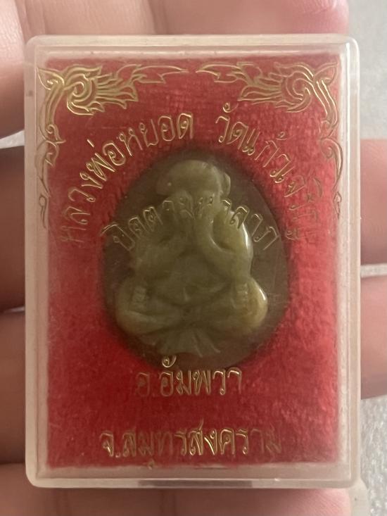 พระปิดตามหาลาภเนื้อหยก หลวงพ่อหยอด วัดแก้วเจริญ อัมพวา สมุทรสงคราม ก้นฝั่งตะกรุด กล่องเดิม