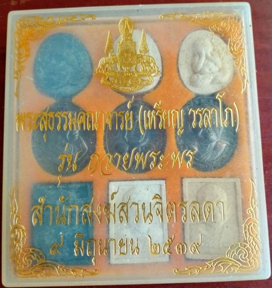 พระชุด 9 องค์ หลวงปู่เหรียญ วรลาโภ วัดอรัญญบรรพต รุ่นถวายพระพร สำนักสงฆ์สวนจิตรลดา ปี 2539 กล่องเดิม