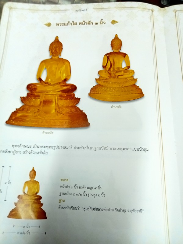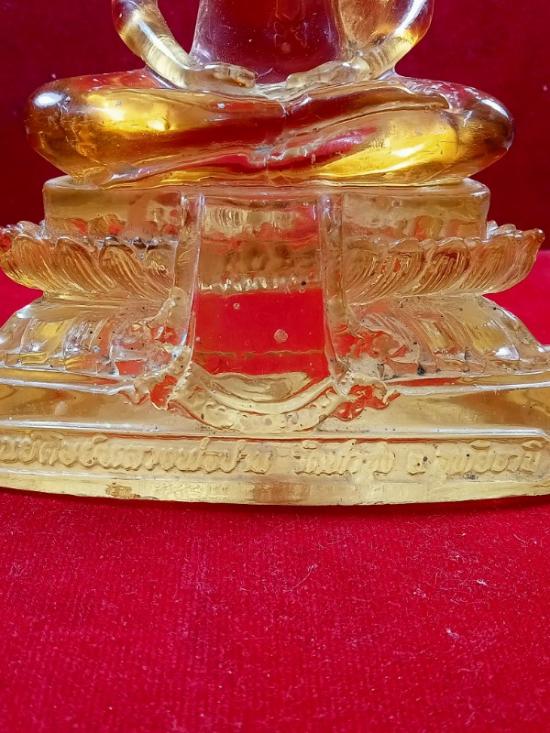 พระบูชาแก้วใส หลวงพ่อฤาษีลิงดำ 3 นิ้วมีการซ่อมบริเวณคอ และใบหูหัก |