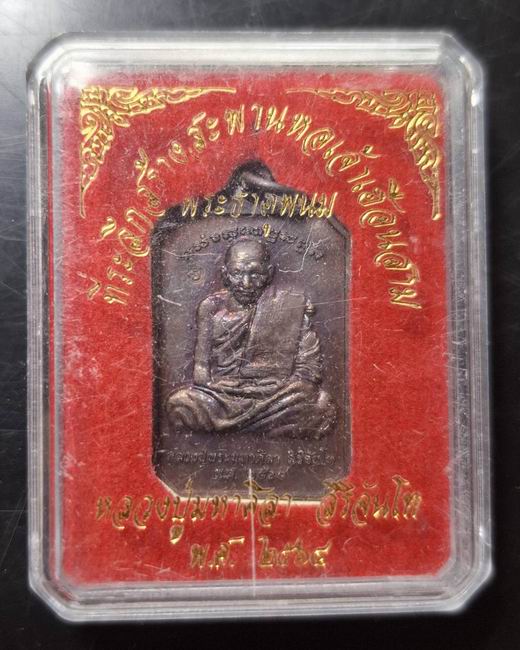 หลวงปู่มหาศิลา สิริจันโท เหรียญที่ระลึกสร้างสะพานหอเจ้าเฮือนสาม เนื้อทองแดง ปลุกเสกข้างในบริเวณพระธาตุพนม |
