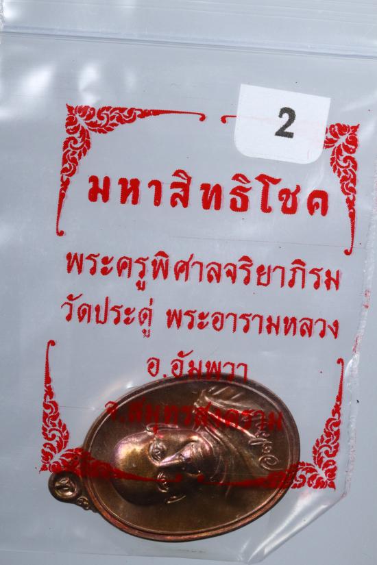 เหรียญเม็ดแตงมหาสิทธิโชค (เหรียญเม็ดแตงรุ่นแรก) พระมหาสุรศักดิ์ วัดประดู่พระอารามหลวง เนื้อทองแดง ซองเดิม |