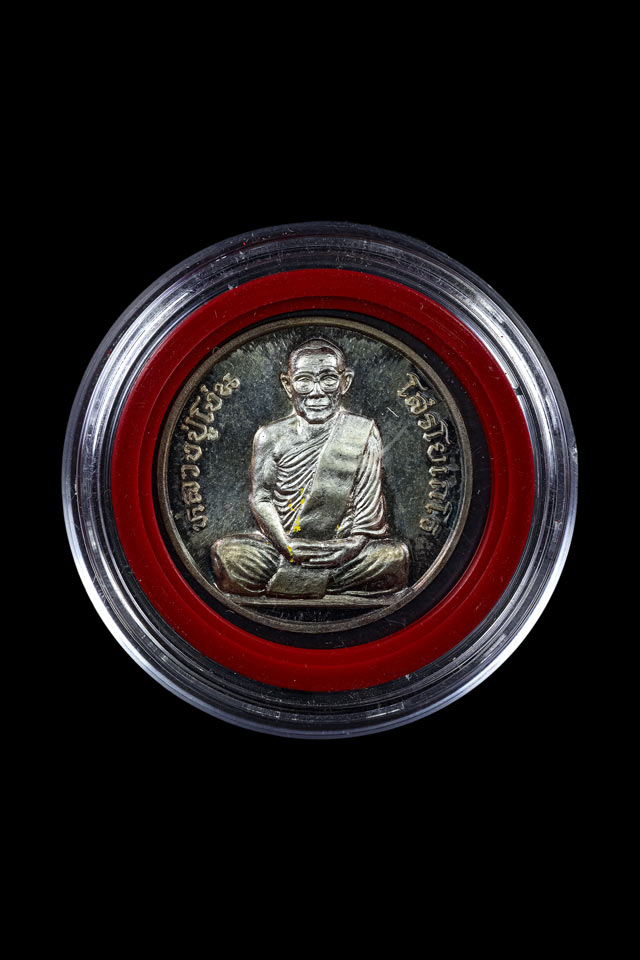 เหรียญกลม รุ่นแรก หลวงปู่โง่น วัดพระพุทธบาทเขารวก เนื้อเงิน พร้อมตลับ จังหวัดพิจิตร |