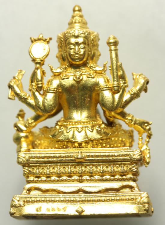 ลอยองค์หล่อพระพรหม รุ่นแรก หลวงปู่เขียว วัดห้วยเงาะ จ.ปัตตานี รุ่น เพชรทักษิณ เนื้อกะไหล่ทอง กรรมการ ใต้ฐาน บรรจุมวลสารศักดิ์มากมาย เส้นเกศา จีวร ตะกรุดเงินและทองคำ พลอยทับทิม ไม้ตะเคียนลอดโบสถ์ |