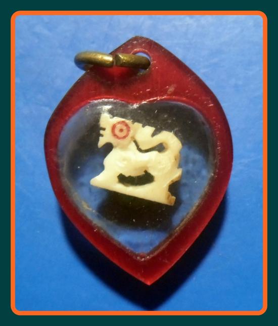 เลี่ยมเดิมจากวัด-250-สิงห์สาริกา งาแกะหลวงพ่อหอม วัดชากหมาก จ.ระยอง |