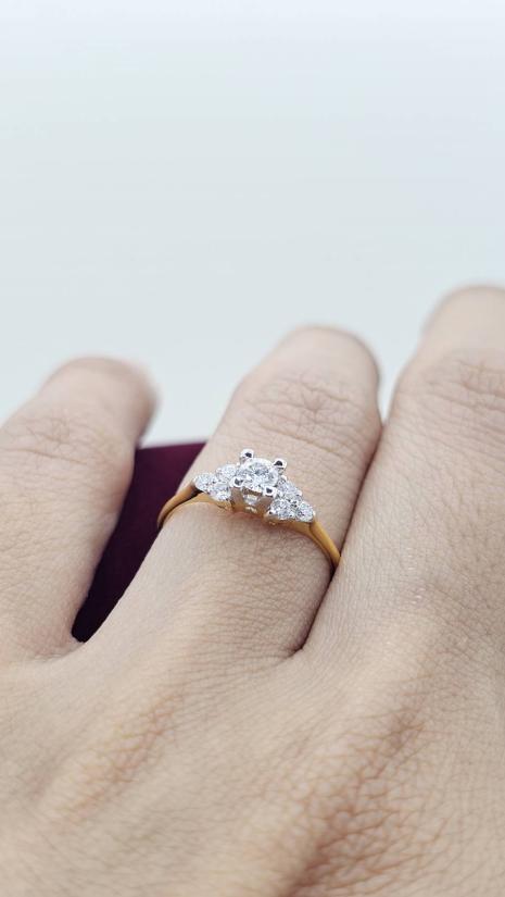 แหวนเพชรแท้ 0.32 Ct. เบอร์ 49 ตัวเรือนทอง น้ำหนัก 1.9 กรัม 82% **พร้อมบัตรรับรองจีเพชร** |